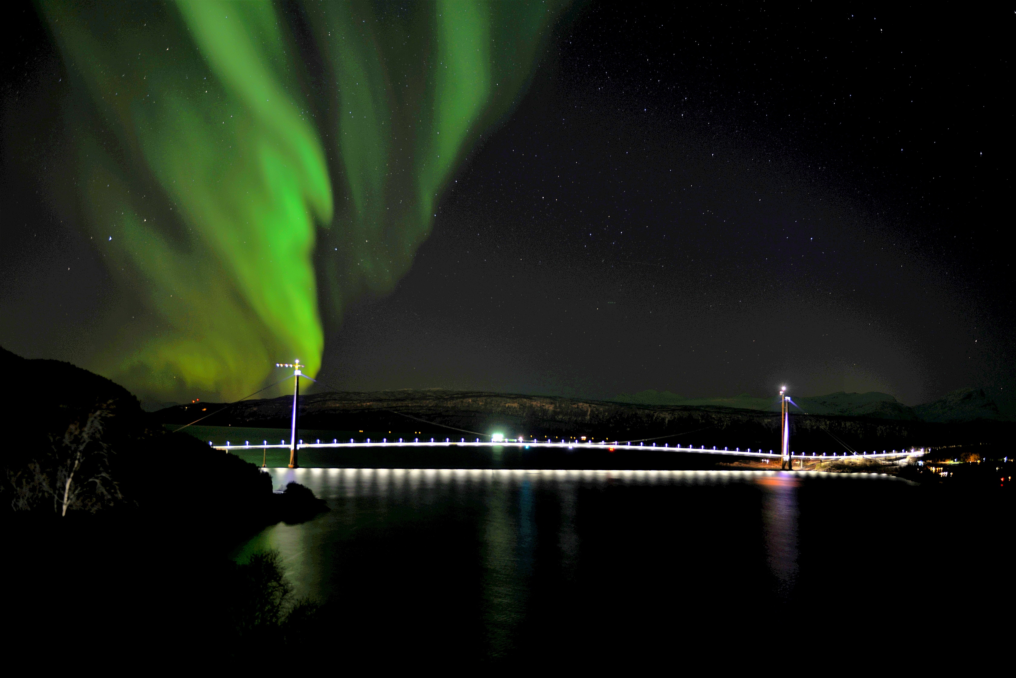 挪威哈羅格蘭德跨海大橋,總長1533米,主跨1145米的鋼箱梁懸索橋,在同類大橋中歐洲排名第5位,世界排名第17位。