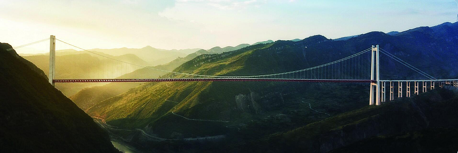 雅康高速大渡河大橋,主跨1100米的鋼混疊合梁懸索橋,需要克服高烈度地震區域、紊亂的峽谷風場條件、高陡邊坡地質破碎、懸索橋跨徑極大等世界級技術難題,被譽為“川藏第一橋”,是當今中國橋梁屆的超級工程。